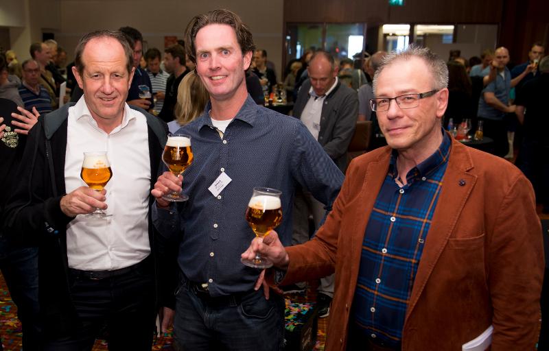 Op de foto hierboven zie je: Brand meesterbrouwer Rob Habets, winnaar thuisbrouwwedstrijd Bart Engel en oud-winnaar Jeroen Free (IPA).