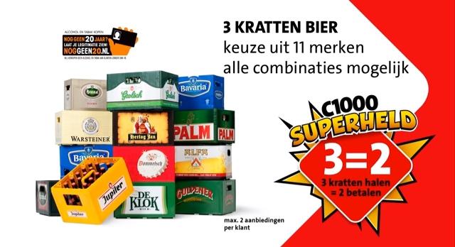 Vanaf vandaag tot en met dinsdag 25 juni herhaalt supermarktketen C1000 haar spraakmakende actie van vorig jaar: 3 kratten bier halen 2 kratten bier betalen.