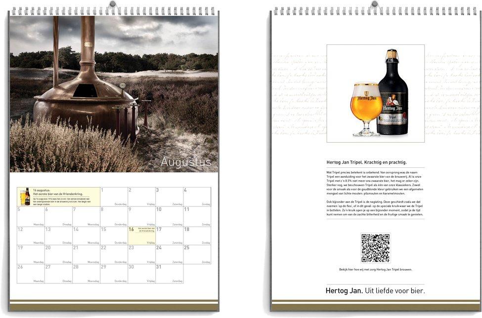 In de kalender is onder andere informatie over de ingrediënten en het ontstaan van de verschillende Hertog Jan bieren te vinden. Maar het is vooral de bijzondere fotografie die de boventoon voert en de kalender zo uniek maakt. Fotograaf Thomas Thijsen legt uit: “Bij Hertog Jan wordt een eeuwenoud product op natuurlijke wijze gebrouwen. Dat wilde ik laten zien. Het hedendaagse bier terug in de bron van herkomst: de natuur. Dat levert bijzondere beelden op. Een samensmelting van Hertog Jan bier in de natuur, elke maand weer op een andere manier, maar altijd écht Hertog Jan."