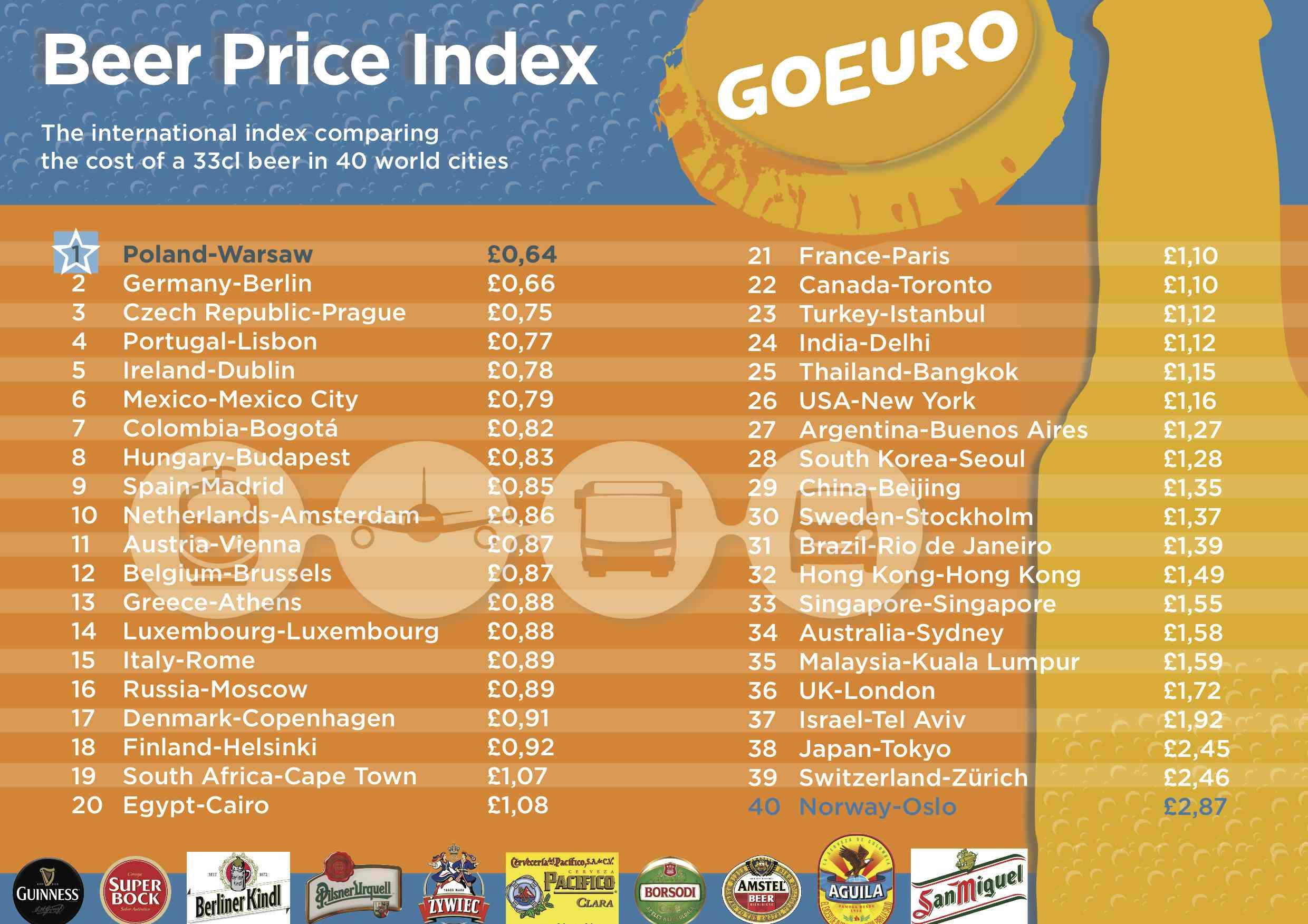 GoEuro, een online reiszoekmachine die alle vervoermogelijkheden in Europa vergelijkt, heeft hier op ingespeeld. “Bier is populair in elk land in de wereld en vaak een onmisbaar ingrediënt op vakantie. Daarom is dit een goede manier om een idee te krijgen hoe duur of goedkoop een stad is voor reizigers van buitenaf.”, aldus Naren Shaam, CEO en oprichter van GoEuro.