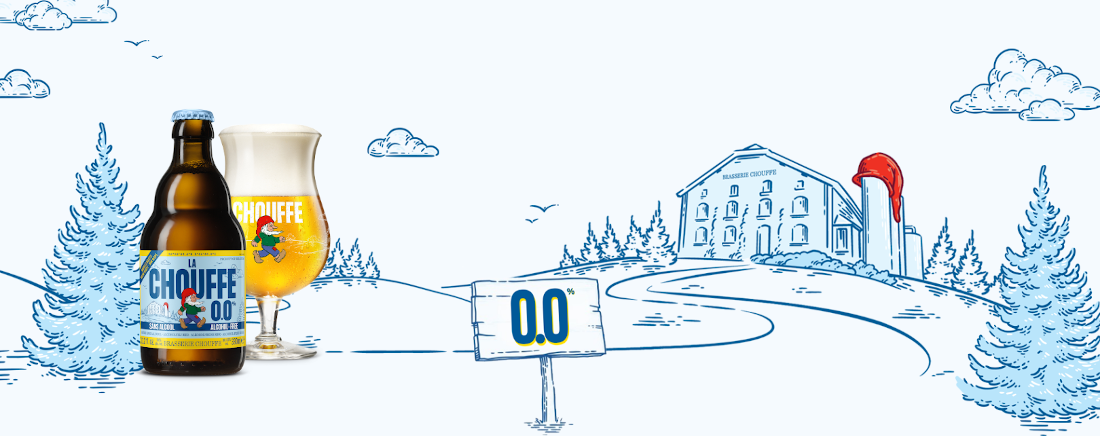 Na de introductie van de Chouffe 0.4, die in eind 2022 op de markt werd gebracht als alcoholarm Chouffe-bier, zet Brasserie d'Achouffe een volgende stap. Met La Chouffe 0.0% vervangt de brouwerij de alcoholarme voorganger door een variant die écht helemaal alcoholvrij is. De brouwerij uit het Ardennendal stelde zichzelf de vraag: kan een bier zonder alcohol een echt speciaalbier zijn? Het antwoord is volgens hen een volmondig ja