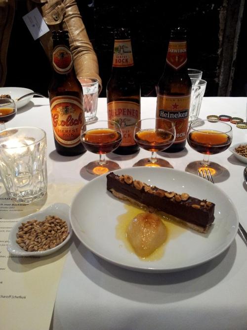 De smakelijke gerechten gingen uitstekend samen met dit herfstige biertje. Elke gang werd geserveerd met een verscheidenheid aan te proeven bockbieren. Bierconnaisseur Henri Reuchlin van het Bierburo voorzag het selecte gezelschap van een passend bockbieradvies: “In het ene bockbier voeren zoete smaken de boventoon en in het andere is de bittere smaak van hop kenmerkend. Juist hierdoor leent bockbier zich perfect voor winterse stoofschotels. Daarnaast past het ook heel goed bij gerechten waarin veel tuinkruiden zijn verwerkt en nagerechten met chocola. De belletjes in het bier verfrissen de smaakpapillen, waardoor het gerecht helemaal tot z'n recht komt.”