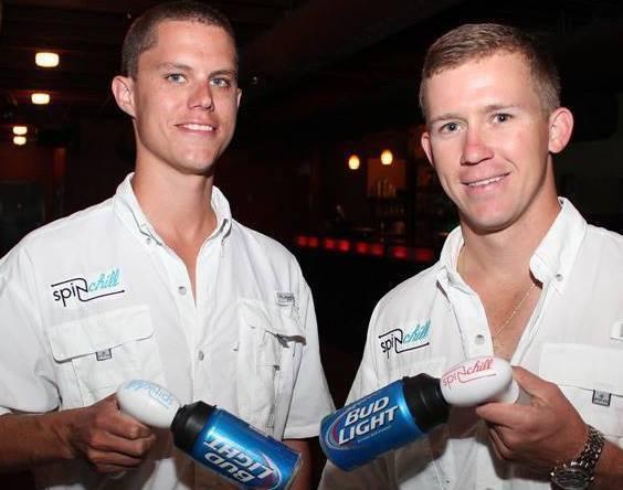 samen in een hotelkamer en wilde een koud biertje. Ze pakten de blikjes bier en draaide ze rond in een koelbox vol met ijs. Opeens vroegen ze zichzelf af of ze geen apparaat konden maken die het bier voor ze draaide. Zo kwamen ze uit op de Spin Chill.